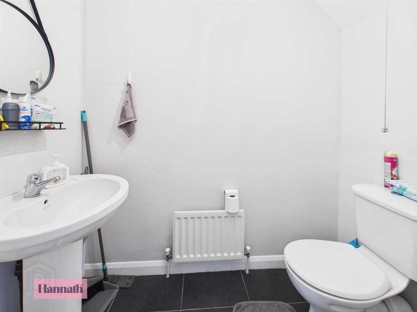 Wash hand basin, w.c., tiled flooring, extractor fan