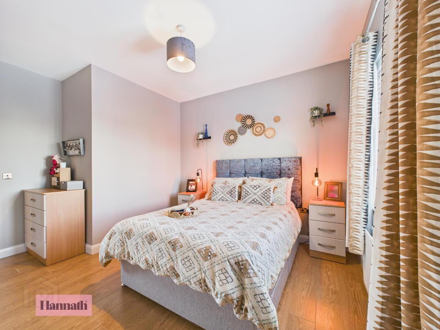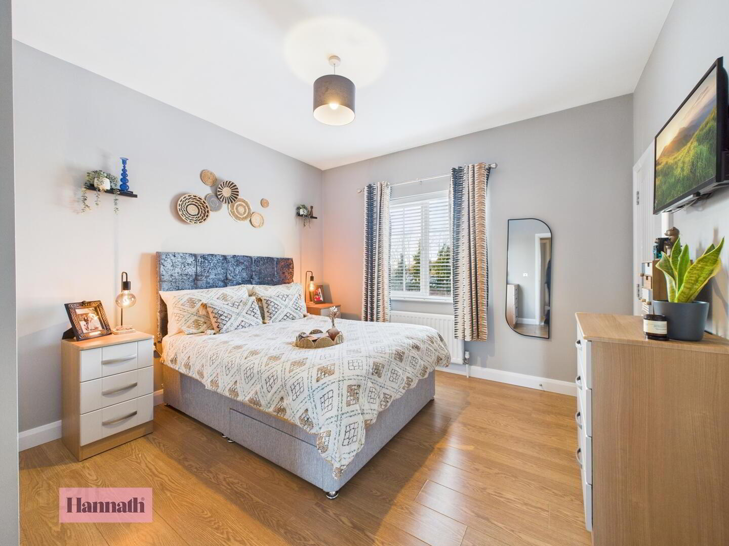 - The master bedroom is generously sized, with wood-effect flooring and soft wall colours. The room is brightened by natural light from a window. An ensuite bathroom offers additional privacy and convenience.