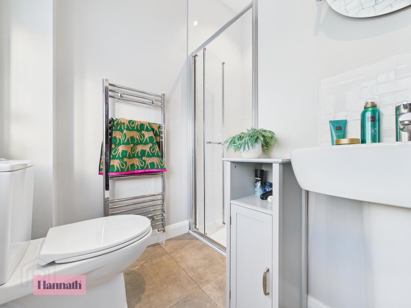 - An ensuite bathroom connected to the master bedroom, featuring a shower cubicle, a toilet, and a basin.