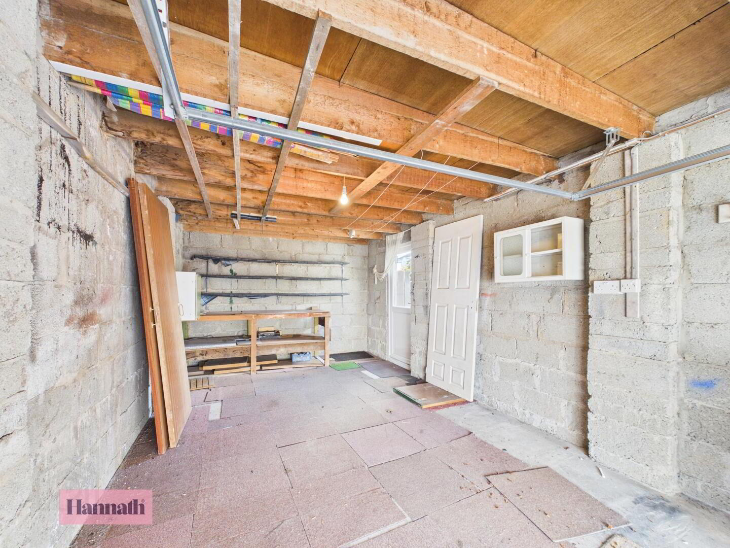 A garage with ample space. The interior is spacious and practical, allowing for storage or workshop use.