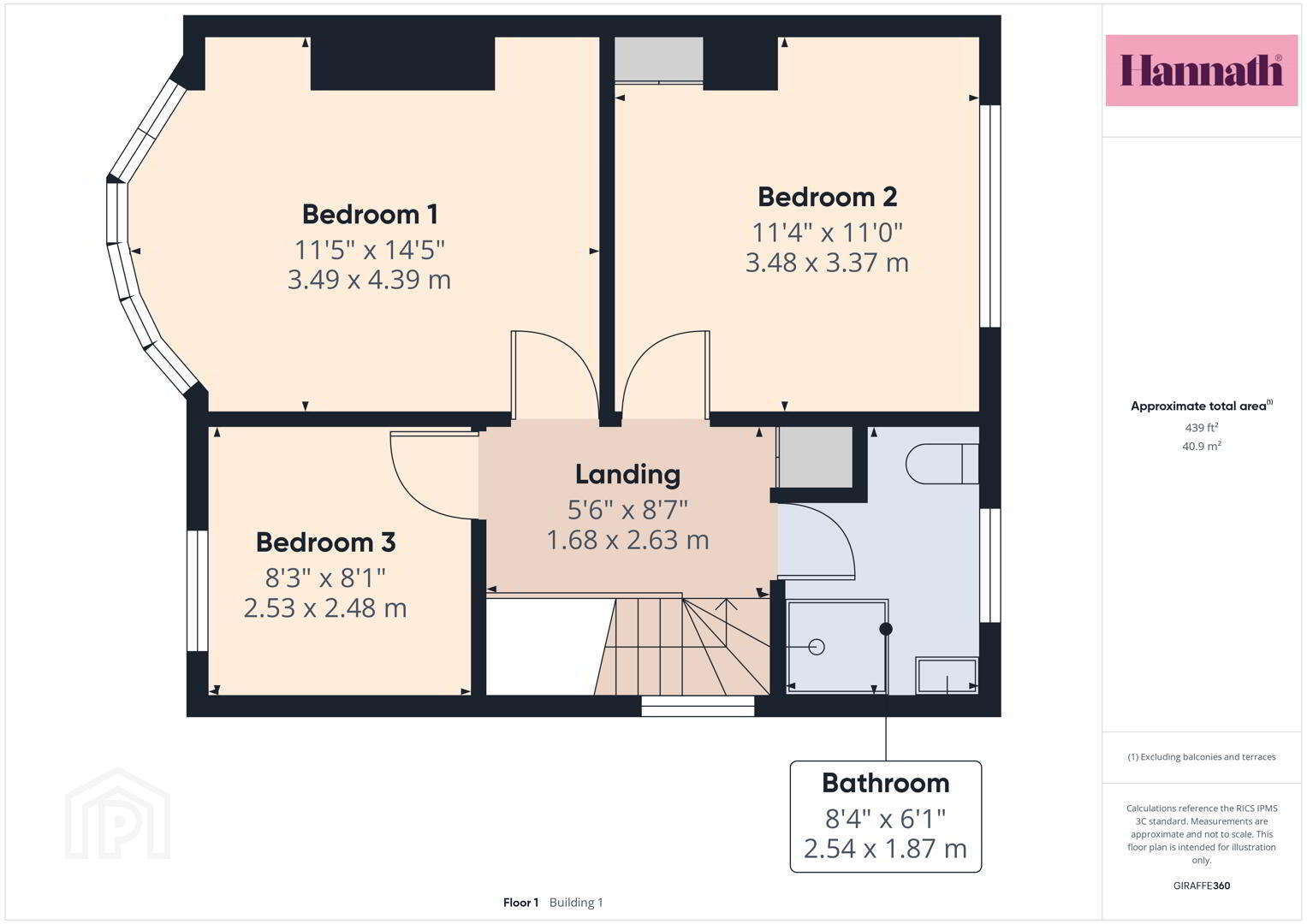 - Bedroom 1 4.39m x 3.48m
