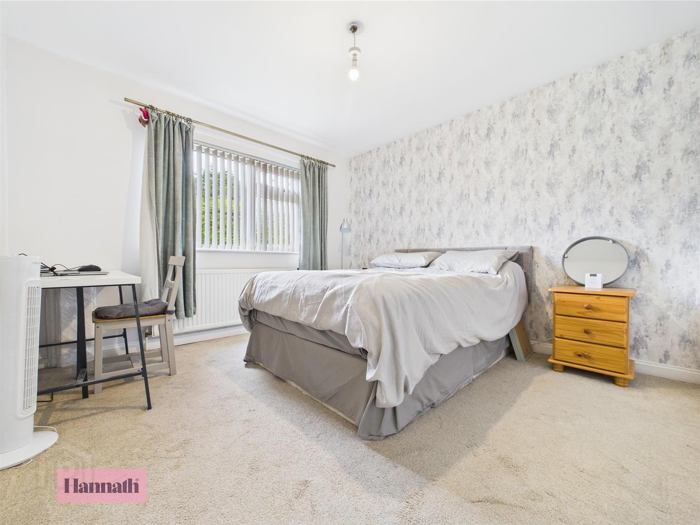 - Feature fireplace with open fire, wood laminate flooring, radiator