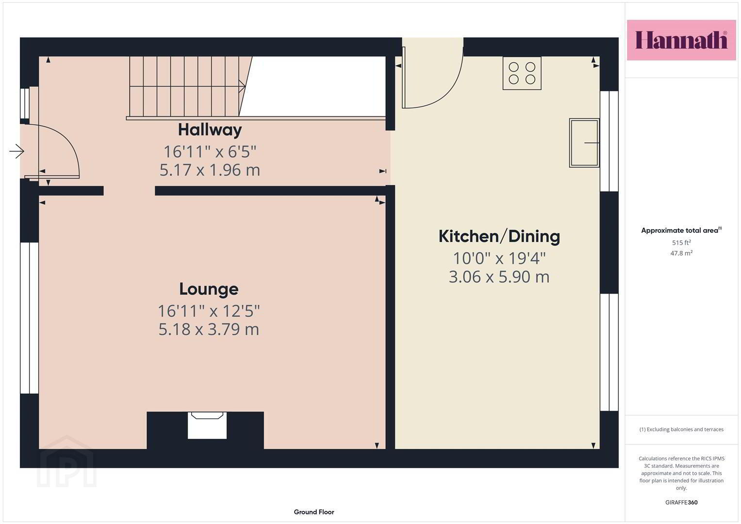 Hallway 16' 11'' x 6' 5'' (5.15m x 1.95m)
