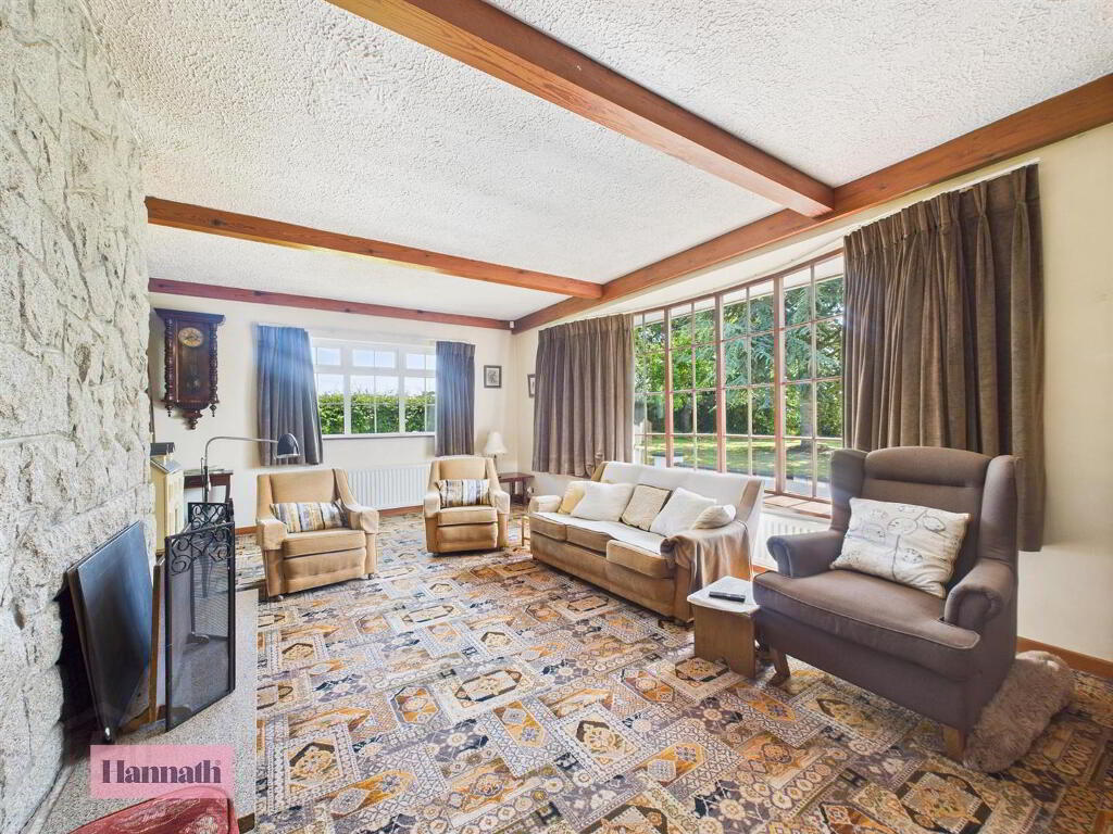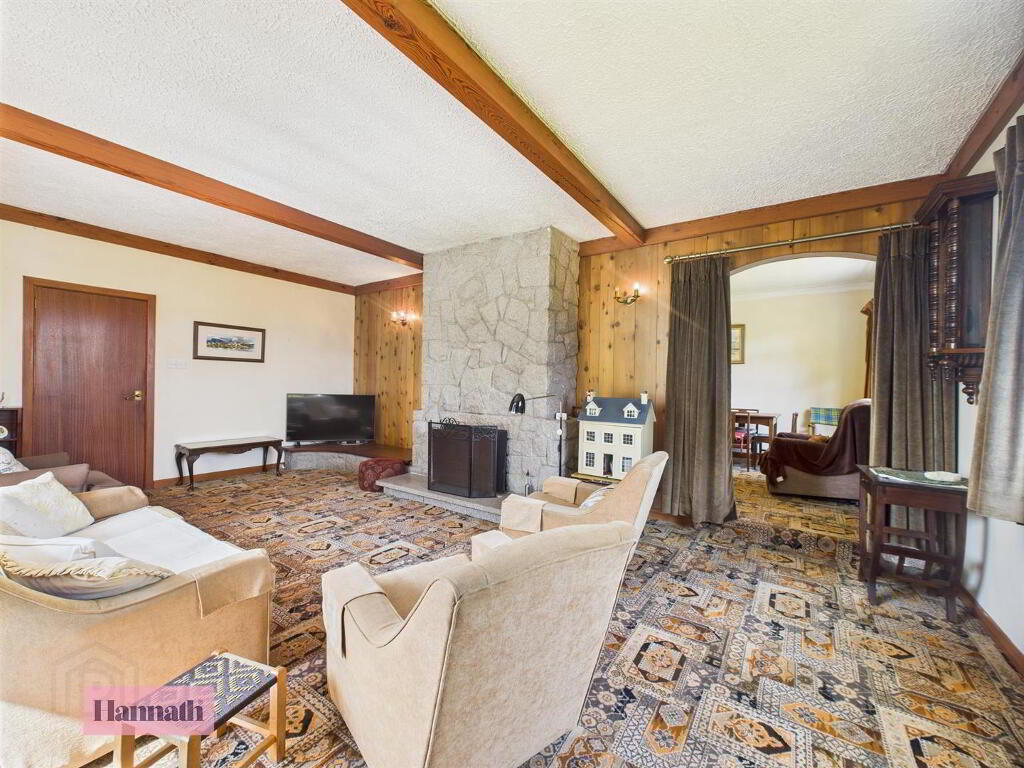 Feature fireplace with open fire, laid in carpet, double panel radiator x2, feature wooden beams
