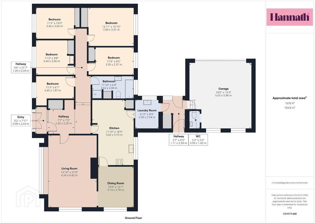Garage 19' 3'' x 18' 5'' (5.86m x 5.61m)