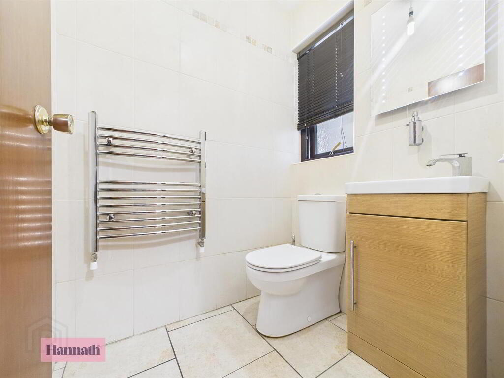 Comprising of; low flush WC and wash hand basin with vanity unit. Tiled flooring and fully tiled walls. Heated towel rail.