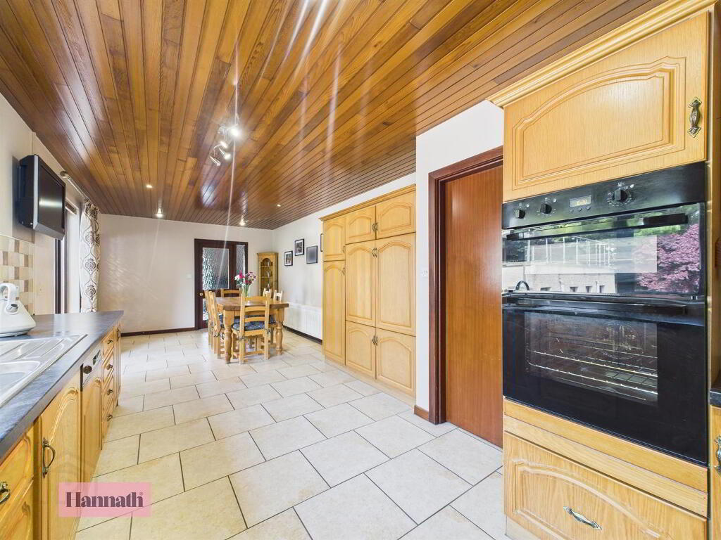 Range of high and low level fitted units with hard wearing worktop and stainless steel sink. Plumbed for washing machine. Space for tumble dryer and free standing freezer. Tiled flooring and splash back. Access to; double garage.