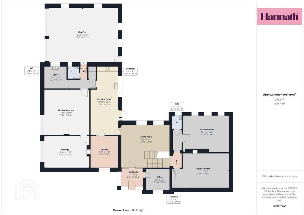 Double Garage 17' 9'' x 17' 9'' (5.41m x 5.41m)