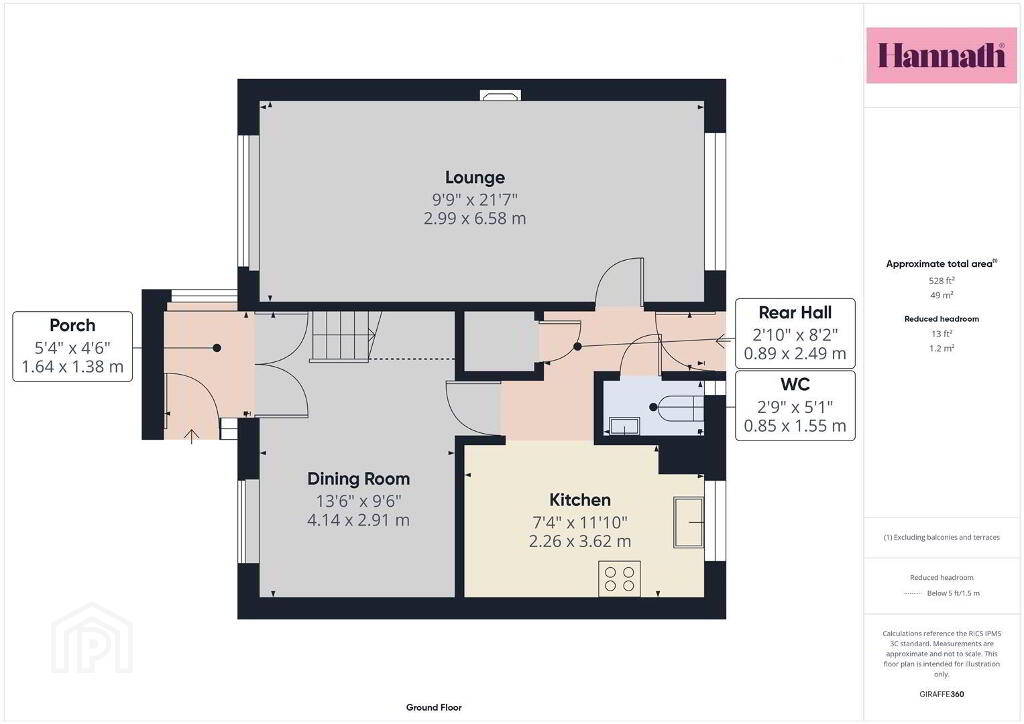Porch 5' 4'' x 4' 6'' (1.62m x 1.37m)