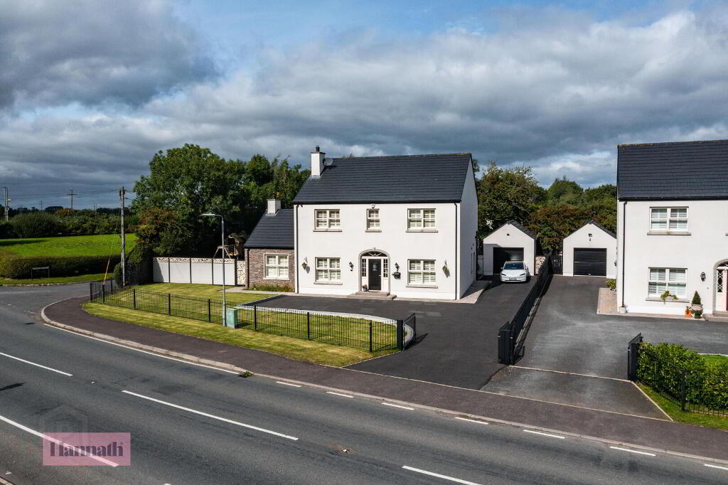 Hannath welcome to the market this beautifully presented four-bedroom detached family home with detached single garage. The spacious accommodation sits on a spacious site approx 0.2 acres and extends to approx 2035 sq/ft of internal floorspace. The property includes four bedrooms, master with en-suite and built in storage, three further spacious double rooms, open plan kitchen/ dining, utility room, downstairs jack and jill three piece bathroom, sunroom, spacious lounge with stove and modern four piece bathroom suite. Internally this home provides bright and spacious family accommodation and is one not to be missed. The property boasts private side and rear gardens making it the perfect location for all. Viewings by appointment only.