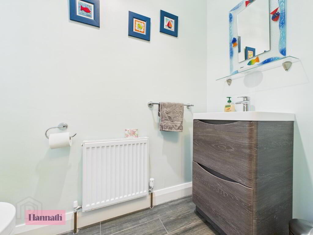 Hannath are pleased to welcome to the market this recently constructed four-bedroom semi-detached home is presented with stylish décor throughout and has been thoughtfully designed for modern family living. On the ground floor, you will find a welcoming lounge complete with a feature stove, a bright and spacious kitchen with open-plan living and dining space, a separate utility area, and a convenient downstairs WC.