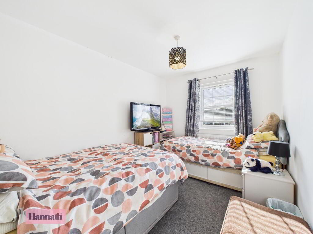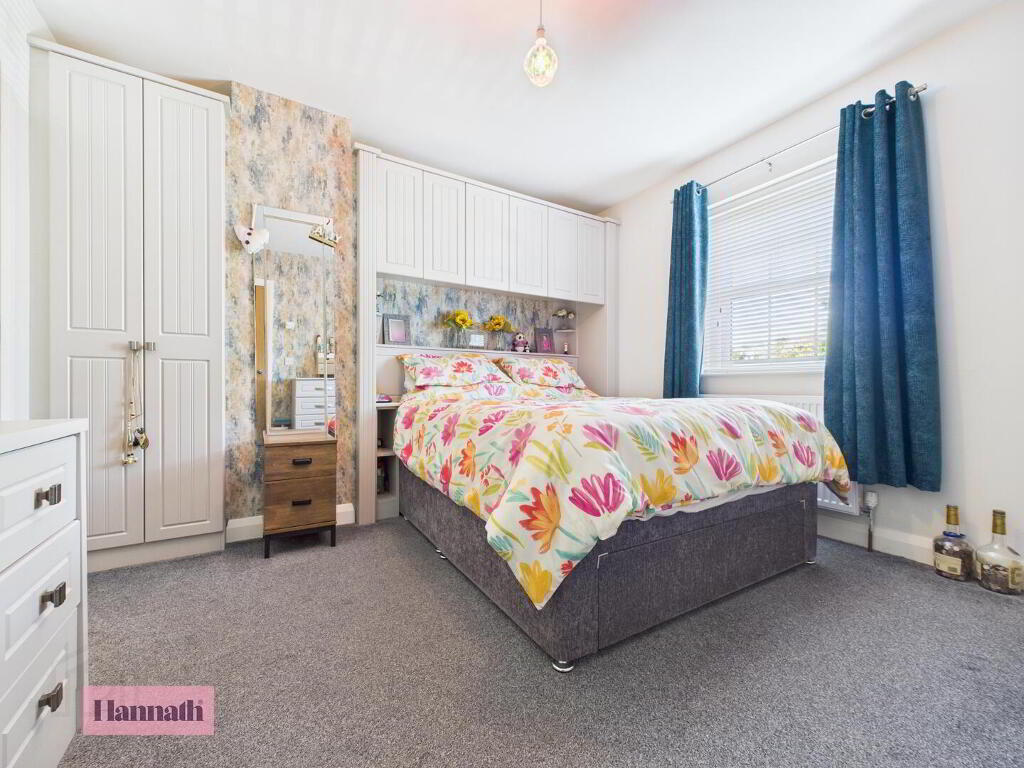 Rear aspect room. Carpet flooring. Double panel radiator.