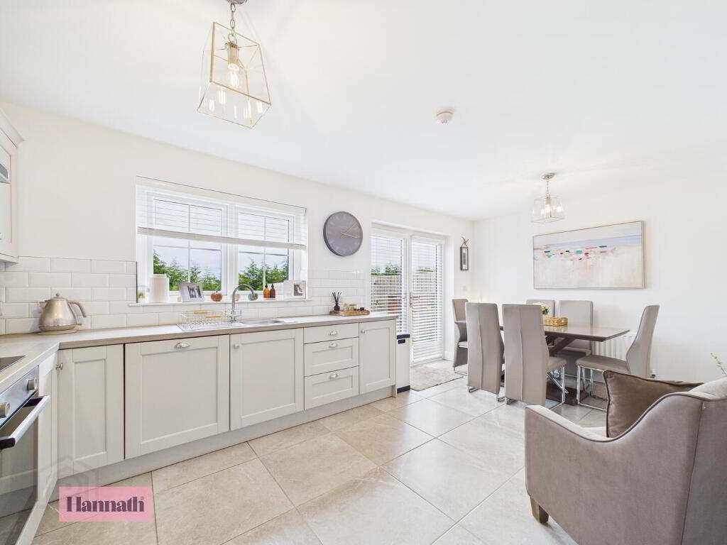 Hannath Estate Agents proudly presents this exceptionally modern and spacious three-bedroom semi-detached family home, a recent build from 2023. The inviting lounge is a true highlight, centered around a cosy wood-burning stove, perfect for warming up on cooler evenings. The heart of the home is the impressive open-plan kitchen and dining area, featuring sleek, modern fitted units and a full range of integrated appliances. Practicality is further enhanced by a convenient utility room and a downstairs WC. Ascending to the first floor, the luxurious master bedroom awaits, complete with its own en-suite bathroom and a generous walk-in wardrobe. Two further well-proportioned bedrooms provide ample family accommodation, all served by a stylish, partially tiled three-piece family bathroom suite.