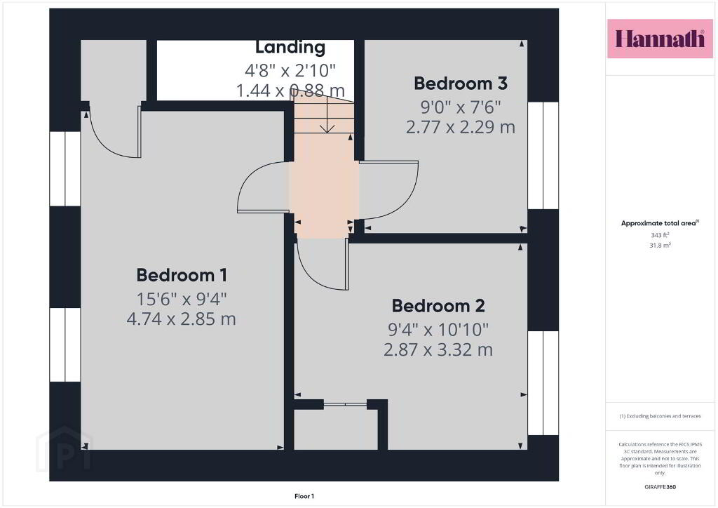 First Floor Landing 8' 11'' x 2' 11'' (2.72m x 0.89m)