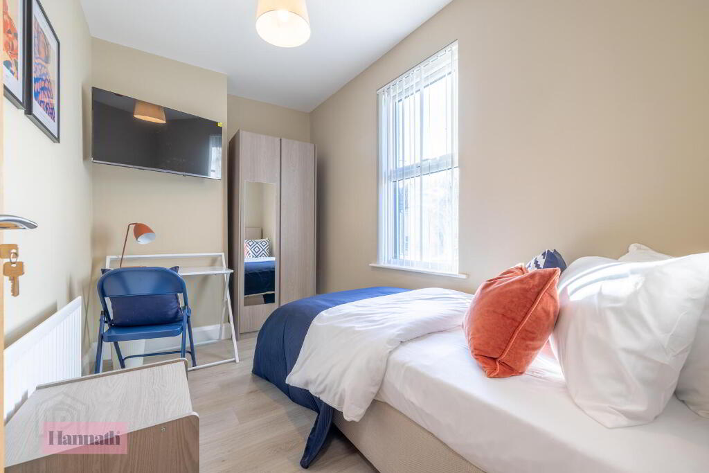 The interior of the property boasts a contemporary design, featuring a spacious common area that encourages social interaction among residents. The modern kitchen is well-equipped, and the presence of two shower rooms ensures convenience for all occupants. The living room and kitchen/dining area serve as perfect spaces to unwind after a busy day, fostering a sense of community within the house.