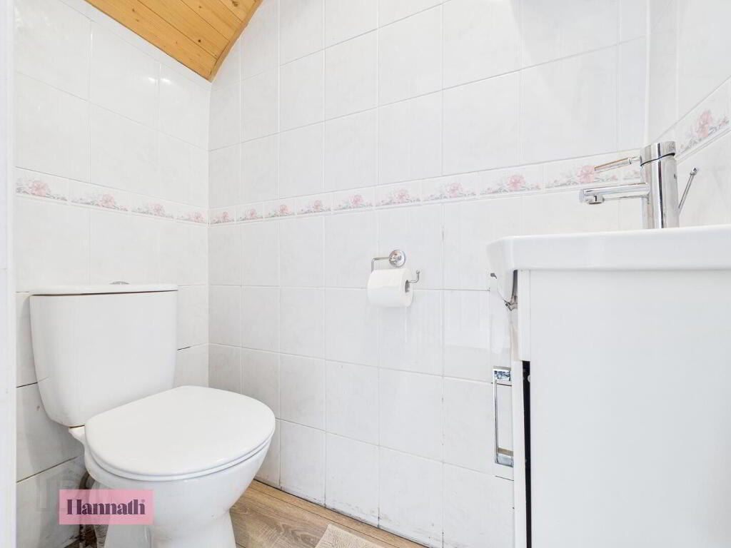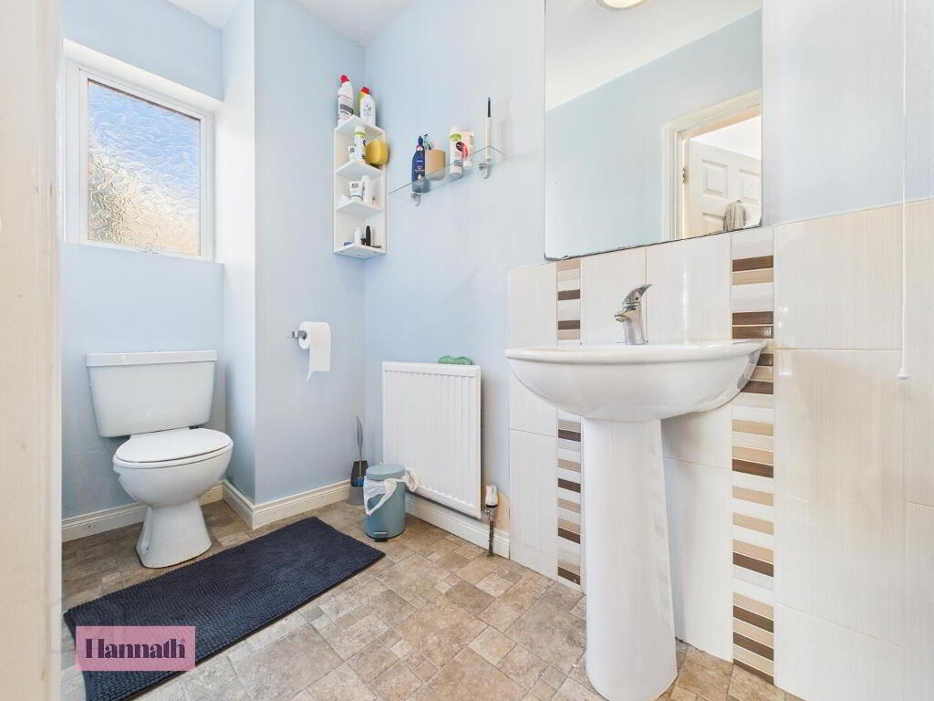 Low Flush WC and Pedestal Wash Hand Basin. Fully tiled.
