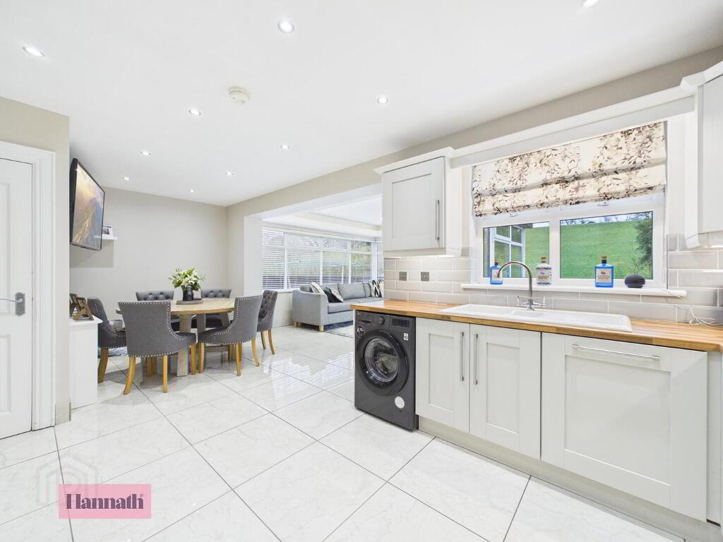 Hannath Estate Agents is thrilled to present this spacious, three-bedroom detached family home, ideally situated at the end of a quiet cul-de-sac. The inviting lounge is a true highlight, featuring an open fireplace and bathed in an abundance of natural light. The open-plan kitchen and dining area showcases sleek fitted units and integrated appliances, seamlessly flowing into a generous sunroom that offers peaceful countryside views. Practicality is paramount with the inclusion of a convenient downstairs WC. The upper level comprises three well-proportioned double bedrooms, complemented by a four-piece fully tiled family bathroom suite.