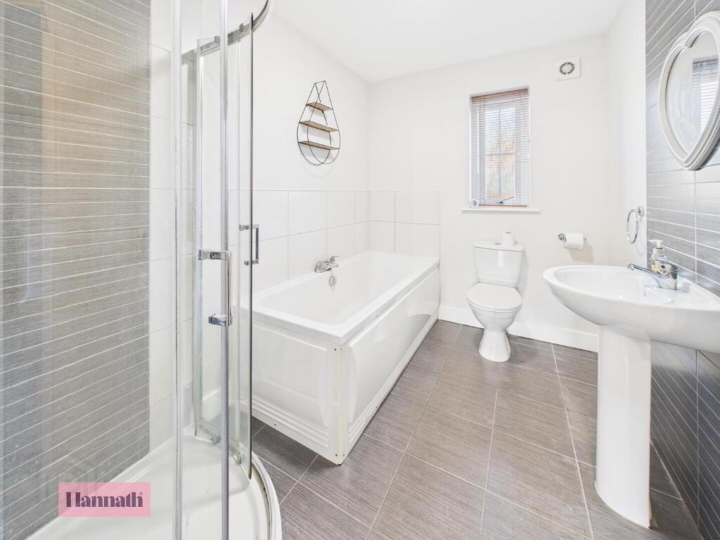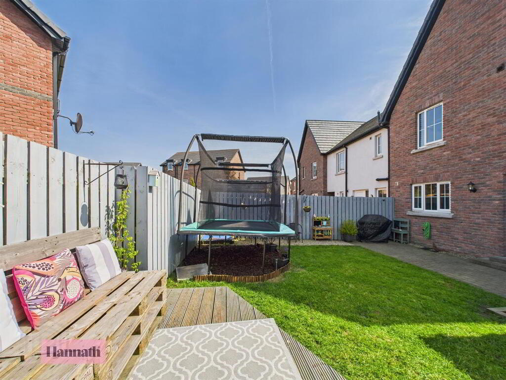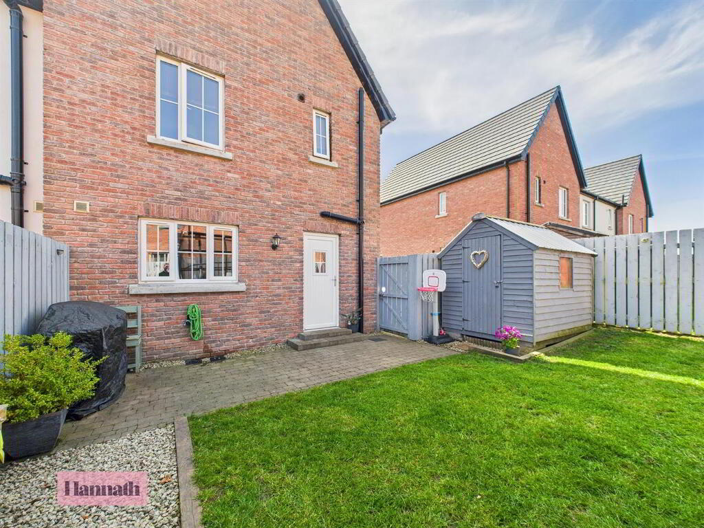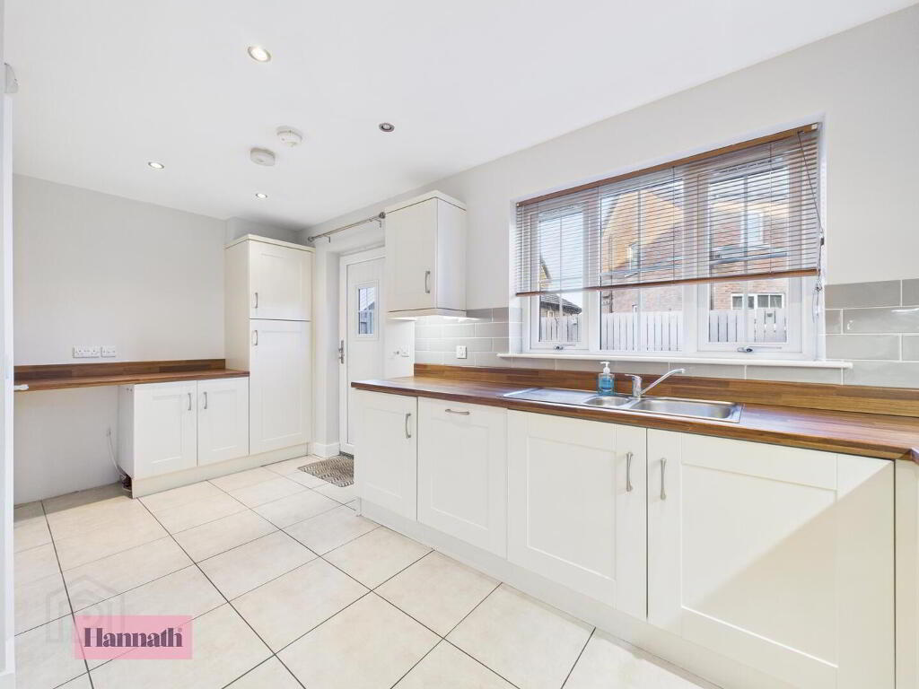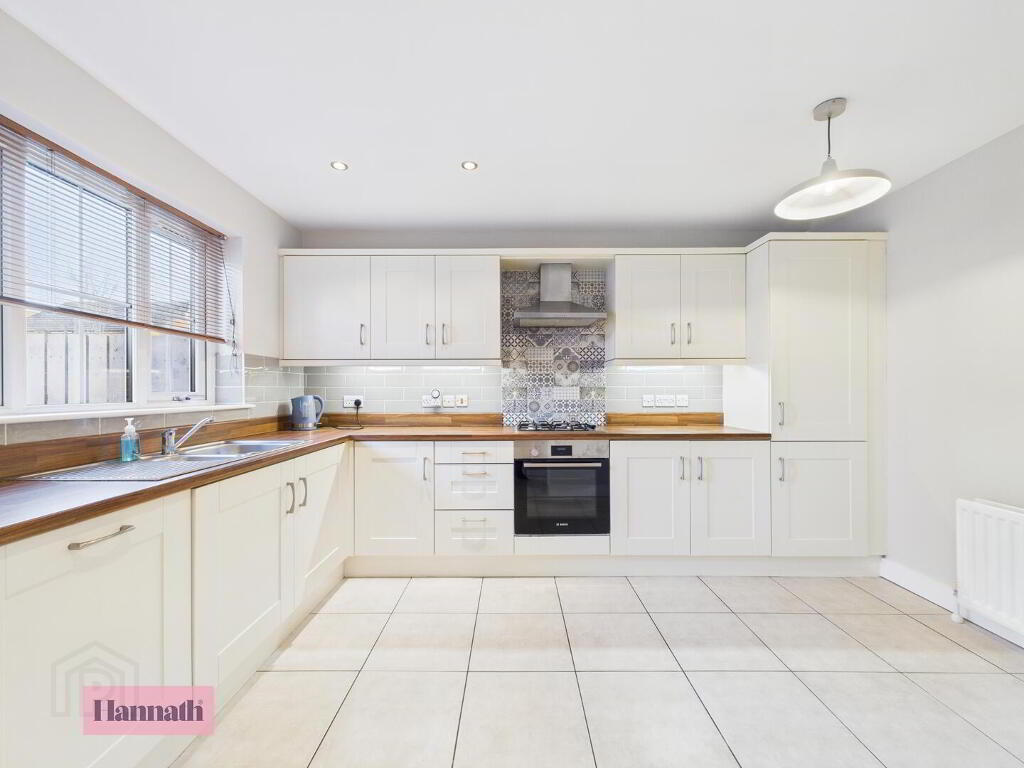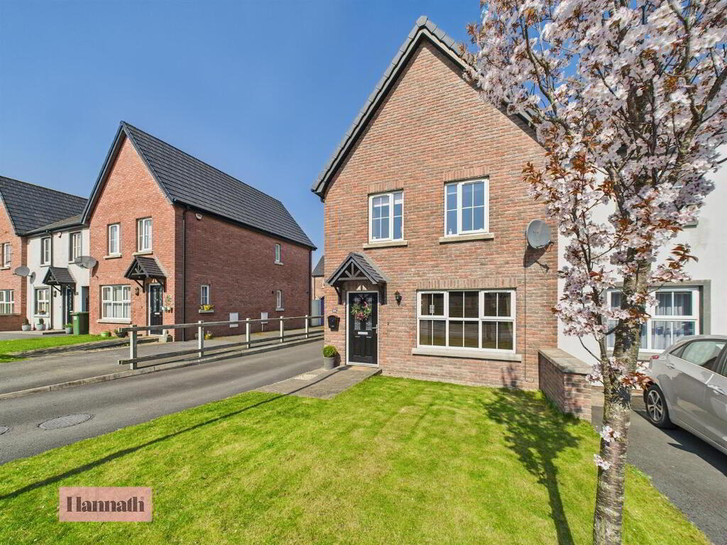Entering into the spacious entrance hallway, the ground floor comprises a large and bright lounge leading to an open, modern kitchen. There is also a downstairs W.C and cloakroom space off the kitchen. The first floor offers three good-size double bedrooms as well as a master bathroom with bath and separate shower enclosure. Externally, there is a private and enclosed rear garden with both patio and grassed areas. The front features a driveway that can accommodate two cars.