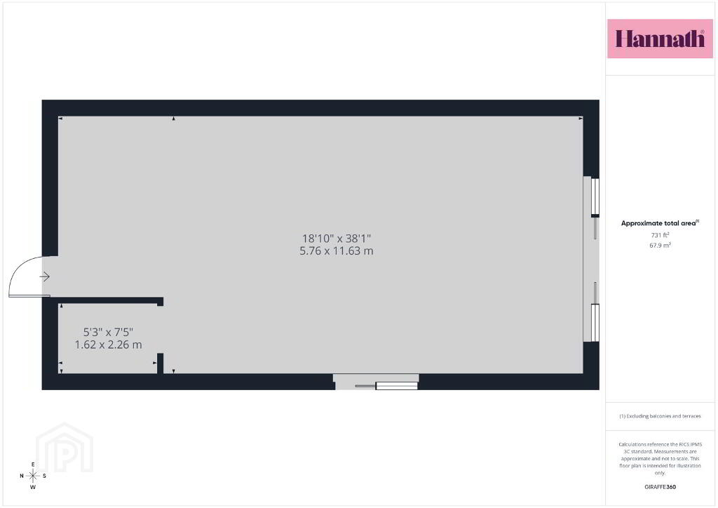 731 Sq Ft open plan area