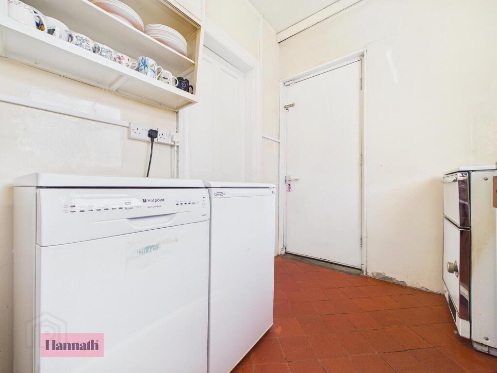 - Range of high and low level units, space for oven, fridge freezer and washing machine, tiled flooring, back door to rear