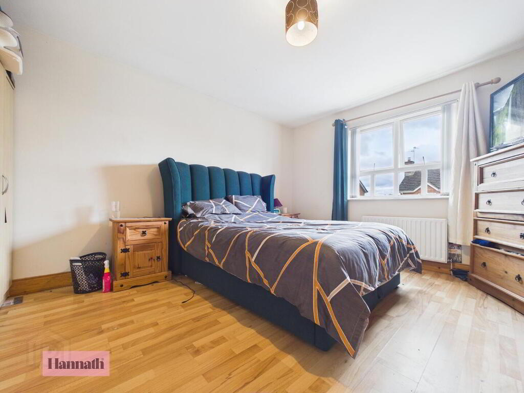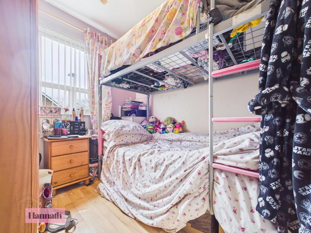 Bedroom two is a good-sized double room, naturally bright with a large window overlooking the rear. Like the master bedroom, it features a wooden floor and neutral walls, providing a versatile space suitable for guests, family, or a home office.