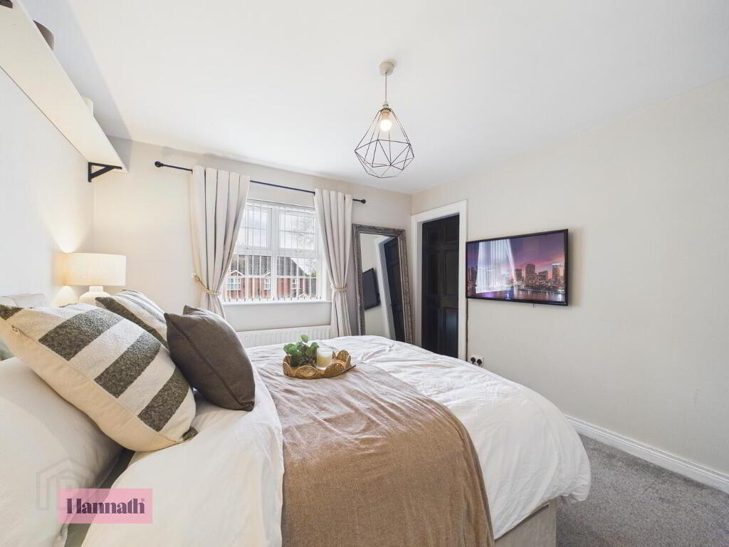 - Bedroom 1 is a well-proportioned room with neutral tones and soft carpeting for comfort. A large window fills the room with natural light, and the space includes an en-suite shower room for convenience.