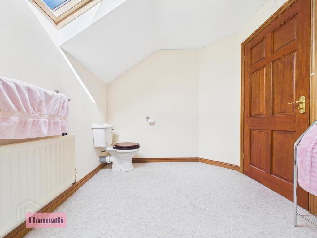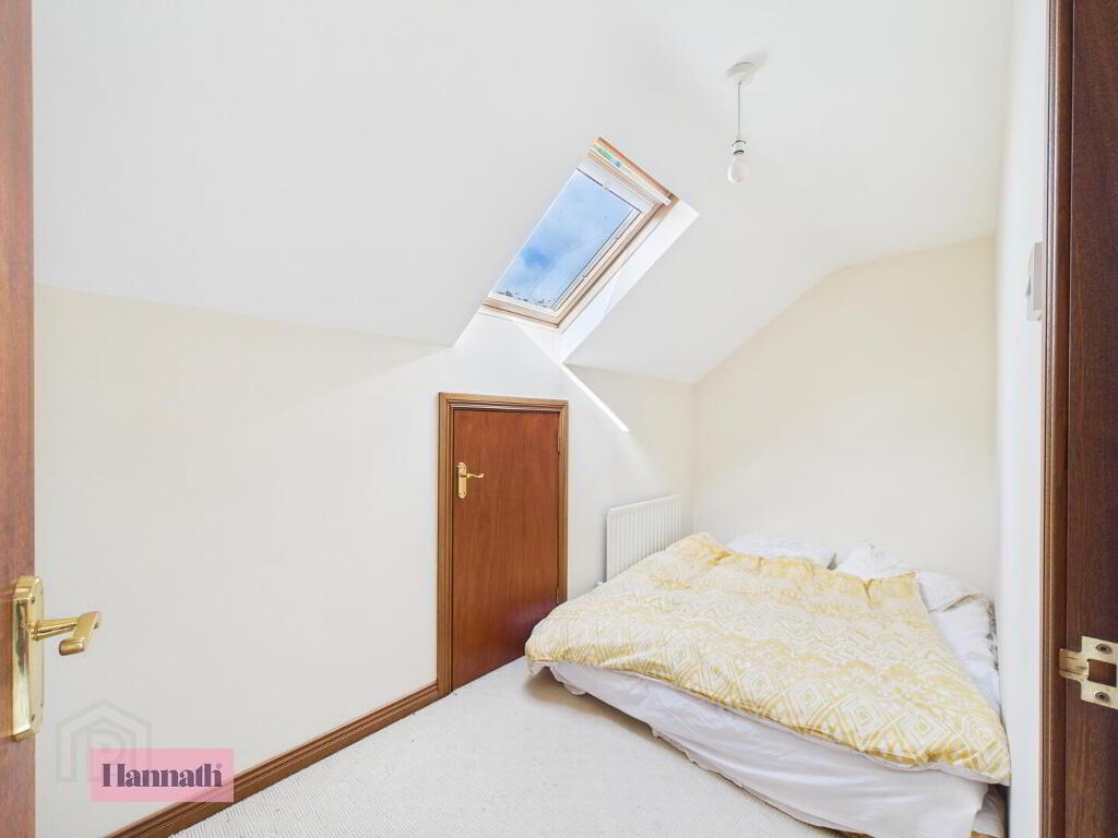 Bedroom 4 is a bright double room with a skylight and built-in wardrobe, offering a peaceful sleeping area on the first floor. The neutral tones and carpeting make it an inviting space with plenty of natural light.