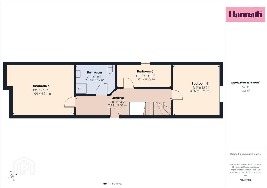 Bedroom 1 is a generous double room with neutral decor and large windows allowing plenty of daylight. It features built-in wardrobes and offers ample space for bedroom furniture