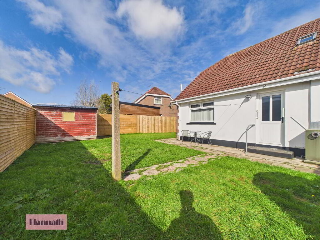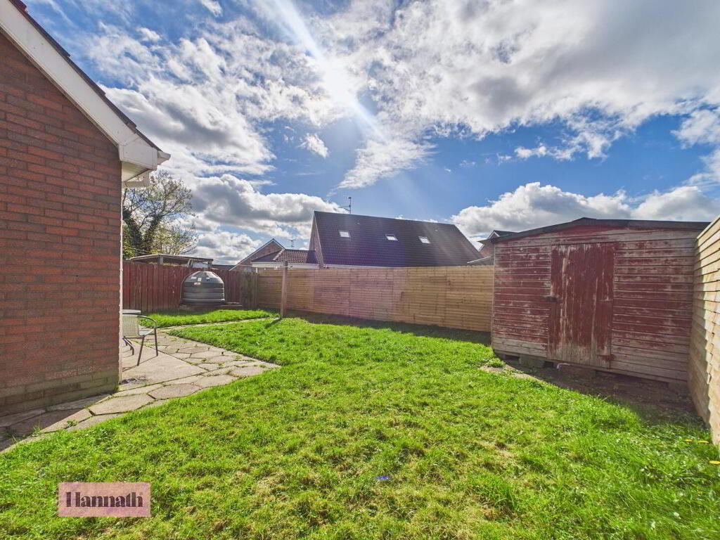 The rear garden provides a private outdoor space with a neatly kept lawn bordered by wooden fencing.