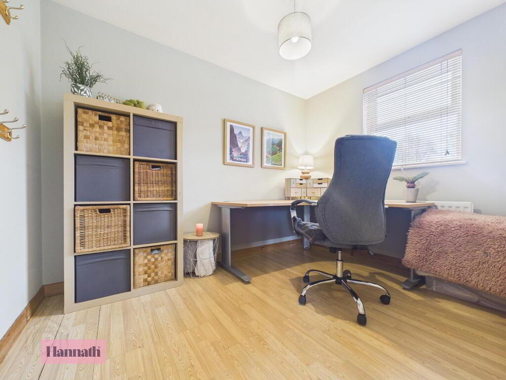 Bedroom 3 is a comfortable single or small double room with wood flooring and a window providing natural daylight.
