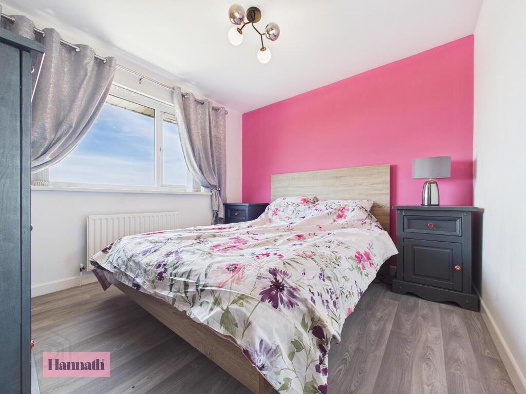 This bedroom is comfortably sized with a sizeable window allowing natural light to fill the room. The space includes a built-in wardrobe.