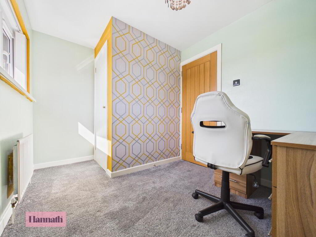 Bedroom Four is currently arranged as a study. It features a window overlooking the front and built-in wardrobe.