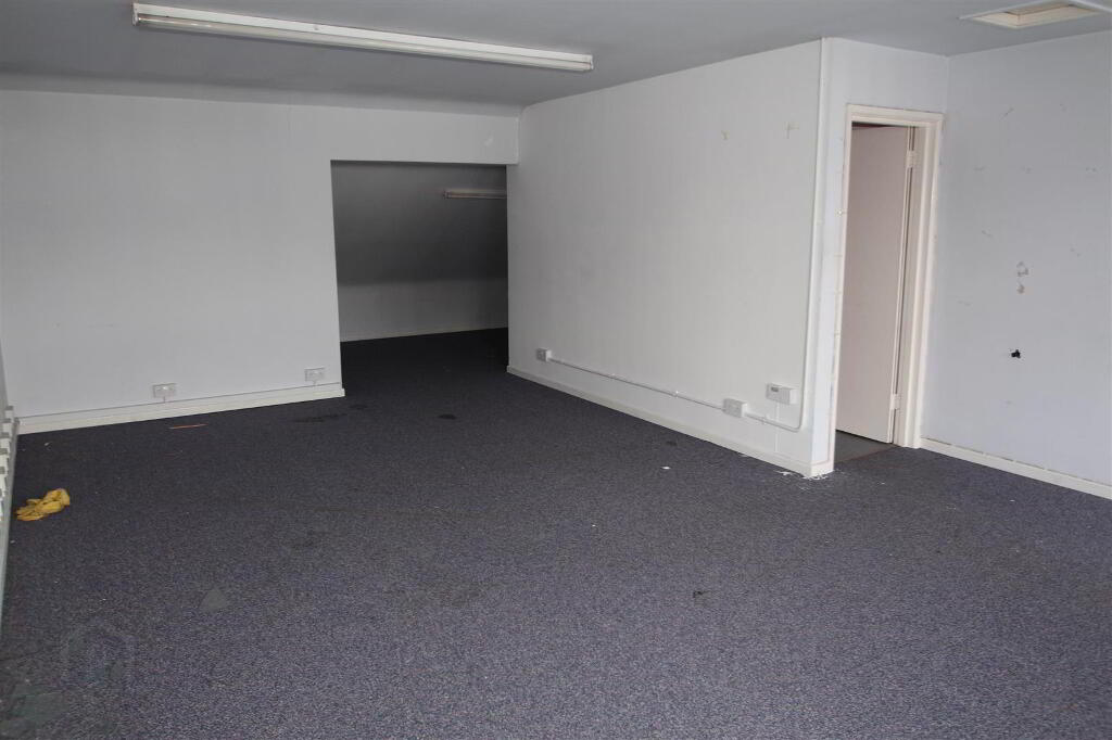 The ground floor is finished with brick block walls, suspended ceiling and plate glass window. Stairs at the rear of the property provide access to the 1st floor. The offices are finished with painted plastered walls, strip lighting and partly carpeted floors.