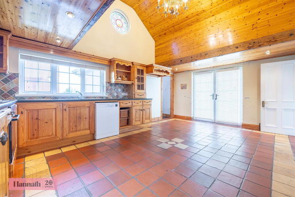 A Range of High & Low Level Units. Integrated Oven. Stainless Steel Tap & Drainer. Double Panel Radiator. Tiled Floor. Cathedral Ceiling with Stained Glass Window.