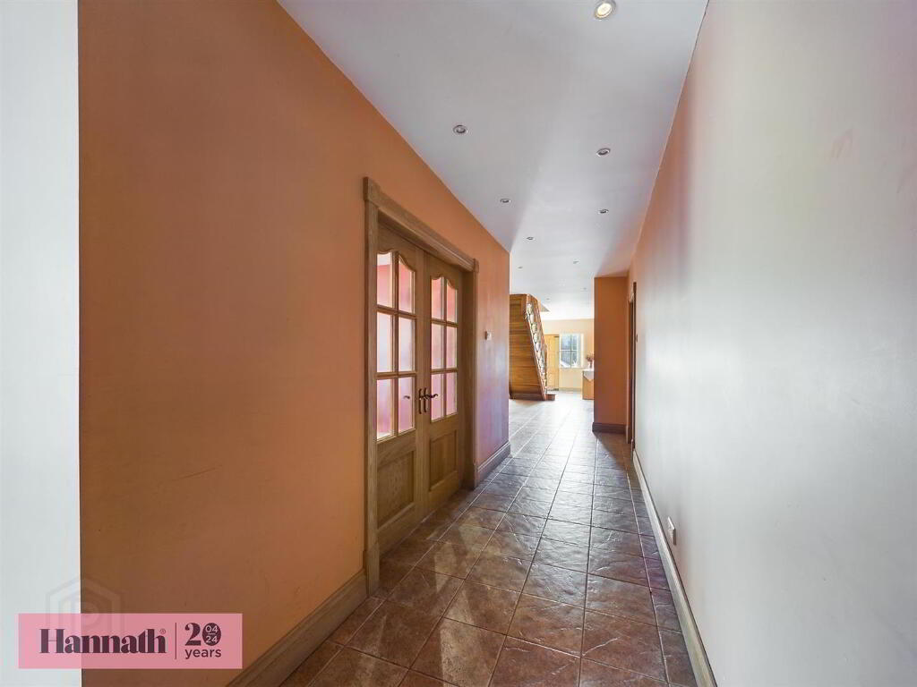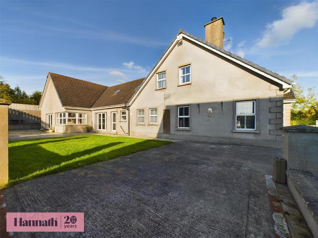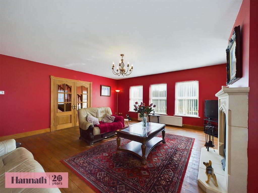 Hannath introduce this detached property which is nestled within a private and mature site of approx 0.85 acre. It enjoys the peace and tranquility of the countryside whilst also enjoying ease of access to Scarva & Tandragee town centres which are just minutes away. The property is approx 6189 sq. ft of floor space which includes six bedrooms (master ensuite) as well as four reception areas, office spaces, utility and a detached double garage, all situated on a landscaped site overlooking the countryside.